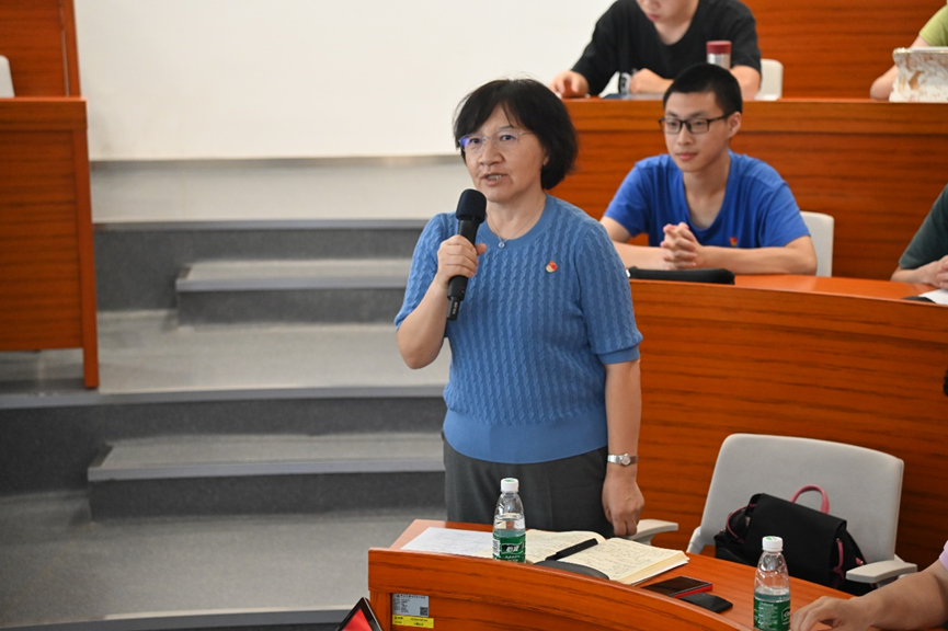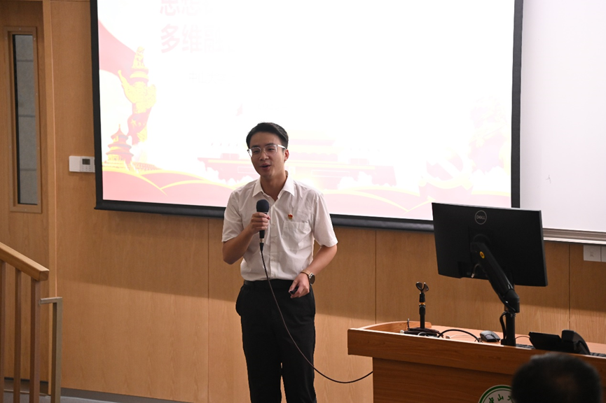 接着,智能工程学院研究生第一党支部书记鲁誉同志围绕“思想铸魂,担当新工科使命;多维融合,助力新青年成长”的主题,分享了支部建设的特色做法,从科创、实践、文化、服务及思想等五个方面,推动支部高质量发展。他强调,通过创新设计支部架构,研究生党支部与教师党支部及本科生党支部上下联动,共同助力学科发展;通过打造“五化”学习模式,更好地发挥党员先锋模范作用,培养有理想、有信念的研究生党员队伍,是行之有效的学生党支部建设路径。
