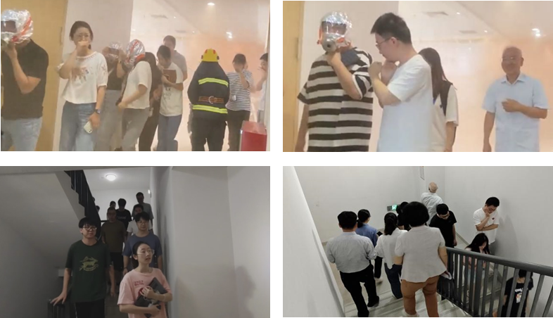 培训结束后,谭院长宣布消防疏散演练活动正式开始。工作人员在10层楼道点燃了烟雾,并拉响火警警报,模拟实验室发生火灾场景,学院师生在实验室负责人、安全员的引导下,按照规定路线依次从消防疏散楼梯,撤离至预设安全区域。整个撤离过程,师生相互协作,井然有序。在户外安全区域,陈景光院助对撤离人数进行了清点,师生全部安全撤离,并将核实结果向演练总指挥谭院长汇报,演练达到了预期目标。