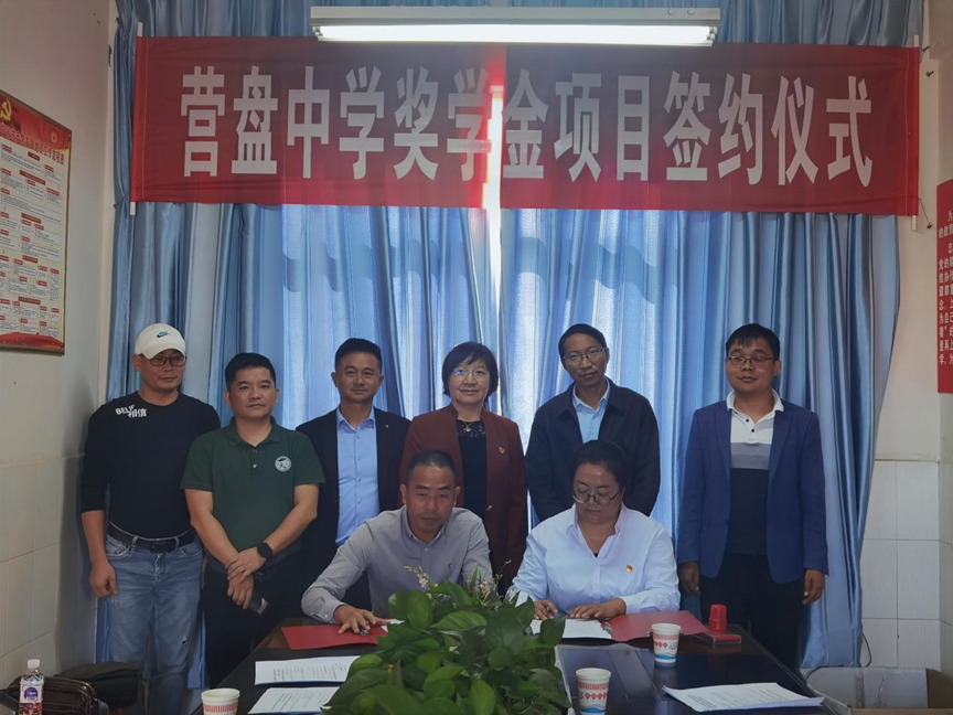 随后,瑞丰公司总裁助理赖文全和营盘中学教务部李秋月主任作为代表,签署了设立“中大-瑞丰奖助金”协议。接着,大家座谈了营盘中学师资力量、少数民族与贫困生、素质教育、校园平安等情况。学院一行表示,将在顺利启动奖助金的同时,逐步开展教师与劳动教育结合的教改与科研项目合作、学生涉农适用新技术职业技能培训与心理健康辅导,共同提高当地教育与人才培养质量。