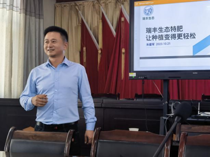 瑞丰公司赖文全总裁助理、朱爱军总监分别介绍了瑞丰公司“修复土壤,营养作物,健康人类”的经营理念,耕耘16年,下设五大生产集团,拓展国内外市场,成为国内肥料行业独树一帜领军企业的发展现状,并表达了公司长期捐资助学、回报社会的责任担当。