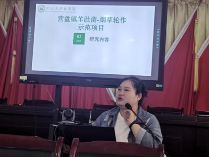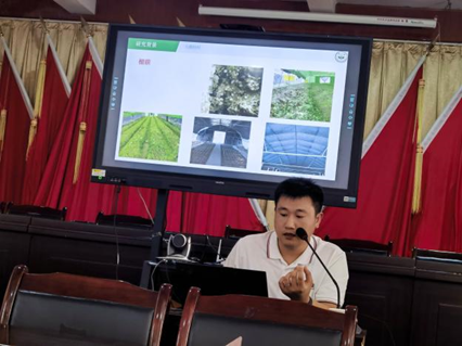农学院营盘镇乡村振兴工作站陈昊站长介绍了学院经过前期调研,在营盘镇开展三项实用技术示范的背景,希望农技中心人员和种植大户与学院密切配合,共同争取三项技术示范成功并逐步推广。杨书记介绍了营盘镇的基本情况,表达了全镇上下十分珍惜与中大农学院党建结对共建的机会,将积极对接、持续努力,在中大农学院的带动下使党组织更加坚强有力,推动营盘镇发展迈上一个新台阶。杨书记还针对示范项目的重要意义和日常管护工作,向农技中心人员和种植大户作了动员。