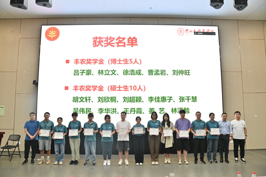 会上,程月华书记宣读了农学院关于 “丰农学奖金”的表彰决定和获奖同学名单。参会嘉宾、学院领导分别为获奖的18名本科生、15名研究生颁发证书和奖金。