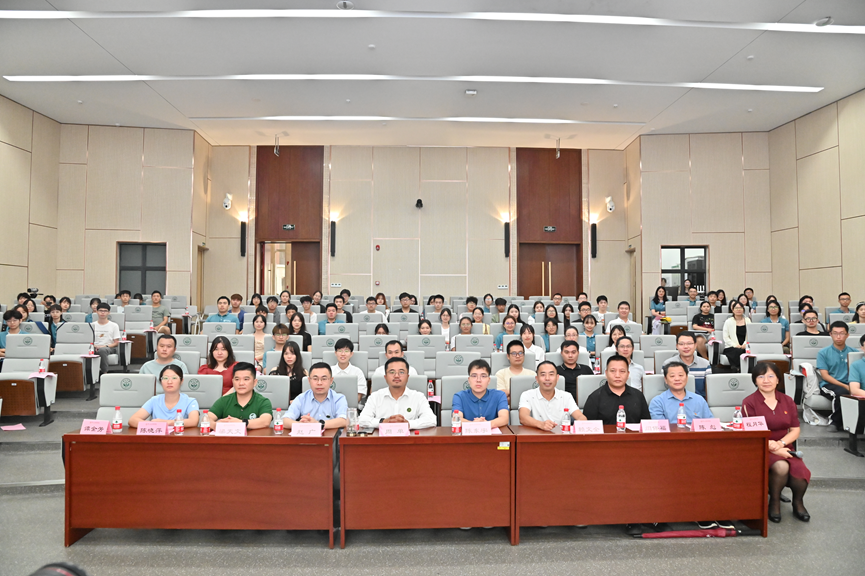 深圳市丰农控股公司联合创始人周单、天天学农CEO赵广,瑞丰公司总经理陈东宇、总裁助理赖文全、土壤修护研究院院长闫保福等合作企业领导,组织部副处级组织员陈彪,学院党政领导及全体师生参加了大会,广州校区的2023级本科生以线上形式参会。 活动由学院党委书记程月华主持。