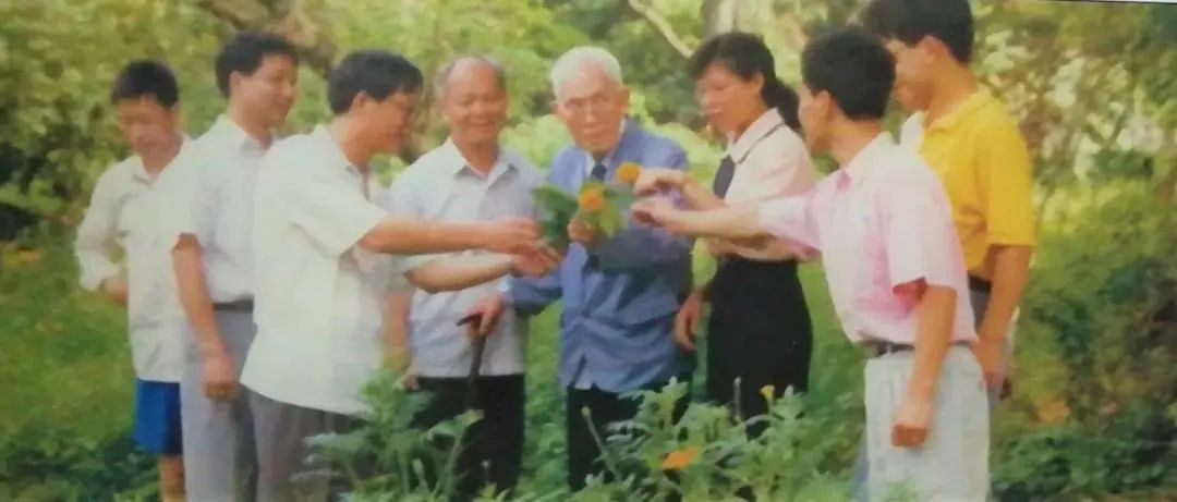 1997年,赵善欢教授与师生观察光活化杀虫植物——万寿菊