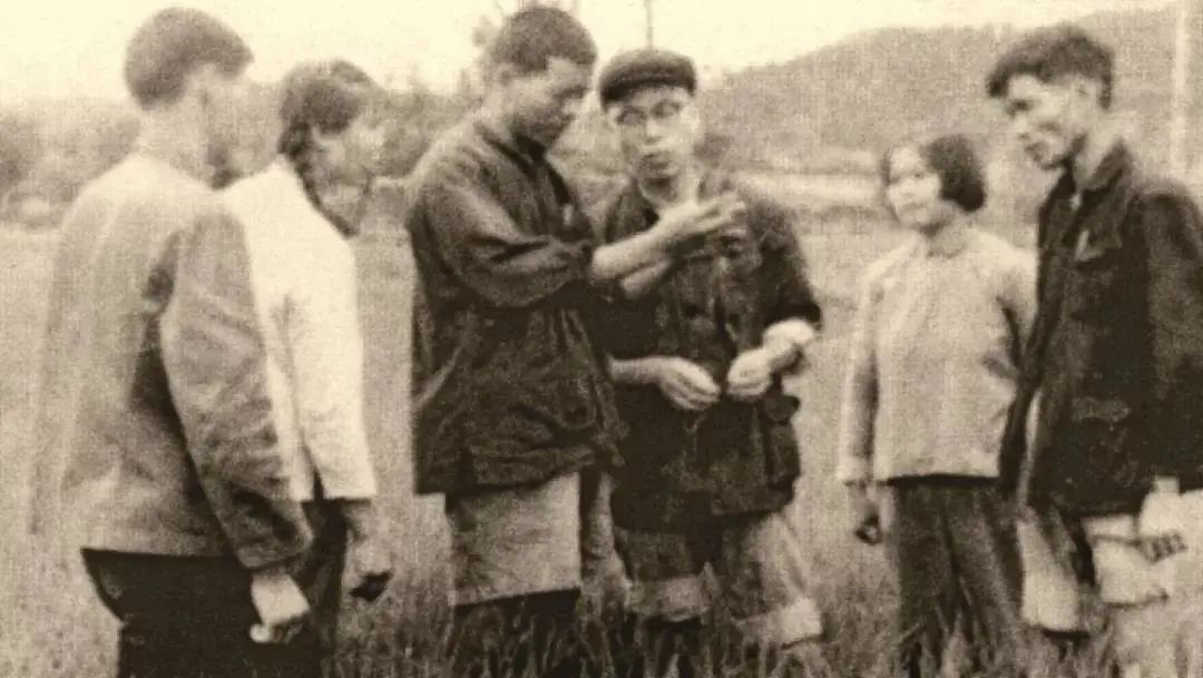 1969年,赵善欢教授在佛岗县与农民观察三化螟为害情况
