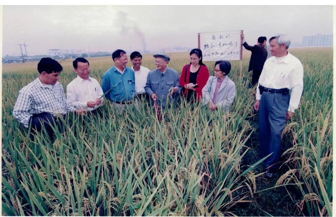 黄耀祥(中)在揭阳考察胜泰1号百亩高产示范田