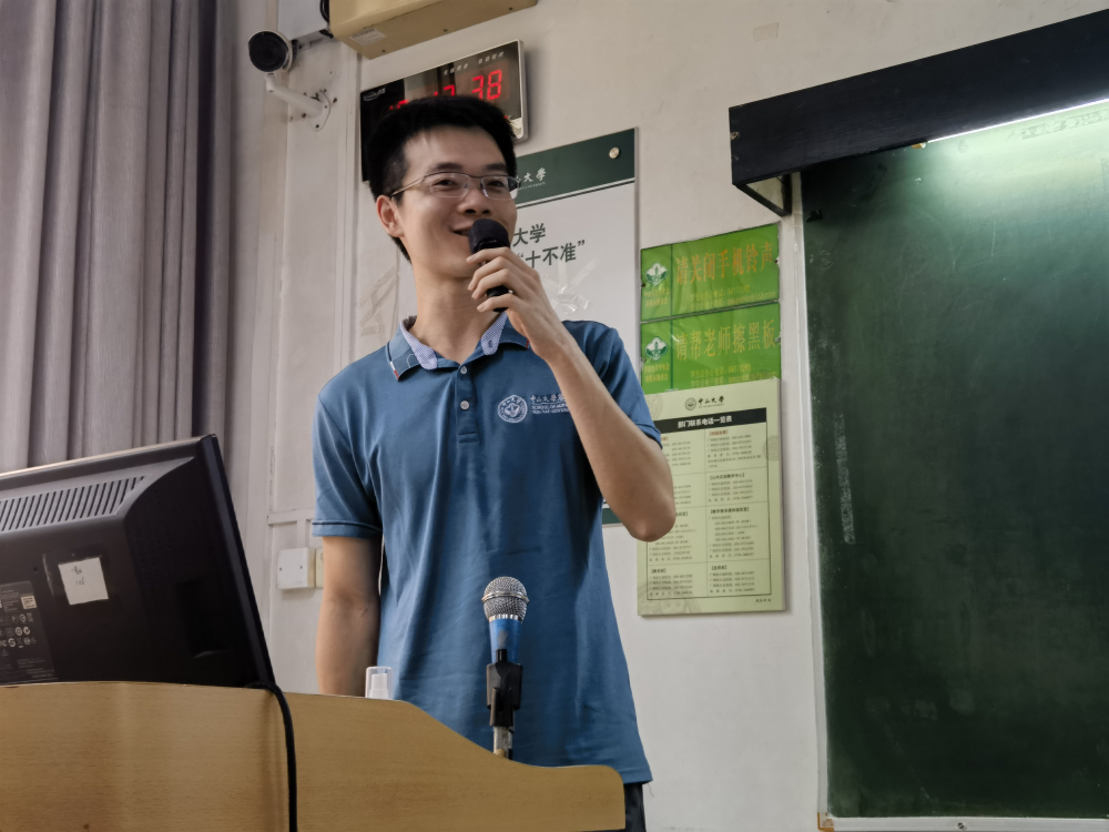 教师代表王东皓副教授结合自己的学习、生活和成长经历,鼓励全体新生能以社会责任和专业兴趣为导向,发现问题、提出问题并解决问题,勉励新生认识自我,规划未来,团结互助、努力学习,丰富视野、强健体魄,珍惜在中大求学的机会,不忘初心,以奋斗书写人生华章。