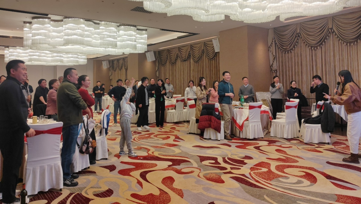 1月17日晚,学院分工会为了缓解大家一学期紧张工作的辛劳,举办了一场迎新春联谊晚会。联欢晚会由分工会青年委员刘婧娜老师主持。分工会准备的“看图猜词”、“正话反说”和“笨拙的小蜜蜂”等趣味游戏,让现场气氛热烈,惊喜不断,气氛在校歌合唱中推向高潮。别开生面的竞猜和互动游戏,不仅增进了教职工们的配合与默契,更加深了了解和友谊,为学院未来的发展和美好生活注入了更多的信心与期待。
