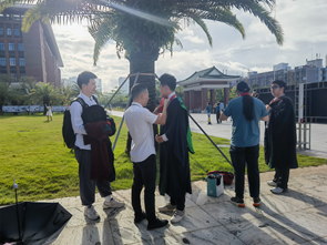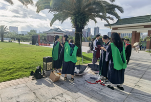 接着,在《山高水长》的伴奏中,农学院研究生教育与学位专门委员会谭金芳教授、辛国荣教授、胡建教授为农学院博士、硕士学位获得者授予学位;农学院本科教育与学位专门委员会谭金芳教授、辛国荣教授、胡建教授、姜晓谦副教授、史俊鹏副教授、苏诗豪副教授、周潇峰副教授、何春桃副教授为农学院学士学位获得者授予学位。各位老师与毕业生逐个握手、拨穗,颁授学位证书,并与每一位毕业生合影留念。流苏从右到左边的拨过,象征着稻穗的成熟,诸位农学学子已学有所成,正待展翅高飞 。