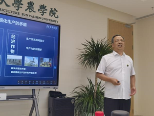 接着,学院党委书记程月华介绍了学院办学简史及复办现状。程书记表示,停办67年之久的中大农学院师生,在复办后的办学点深圳校区终于迎来了抗战办学老区的领导们,表达真诚的感恩之情。抗战办学老区多是交通不便、经济欠发达的农村地区,全方位助力老区的高质量发展和乡村振兴,是我们义不容辞的社会责任。农学院复办后,通过设立“科技小院”“乡村振兴工作站”,科教文化“三下乡”等形式,携手合作的高新企业,针对抗战办学老区和党支部共建地区的“三农”发展短板,提供了党建支持、科教指导和文体帮扶等。学院师生一定牢记建设农业强国、服务国家乡村振兴战略的初心使命,加强与各方的通力合作,努力为抗战办学老区的“三农”发展和中国式农业现代化做出贡献。