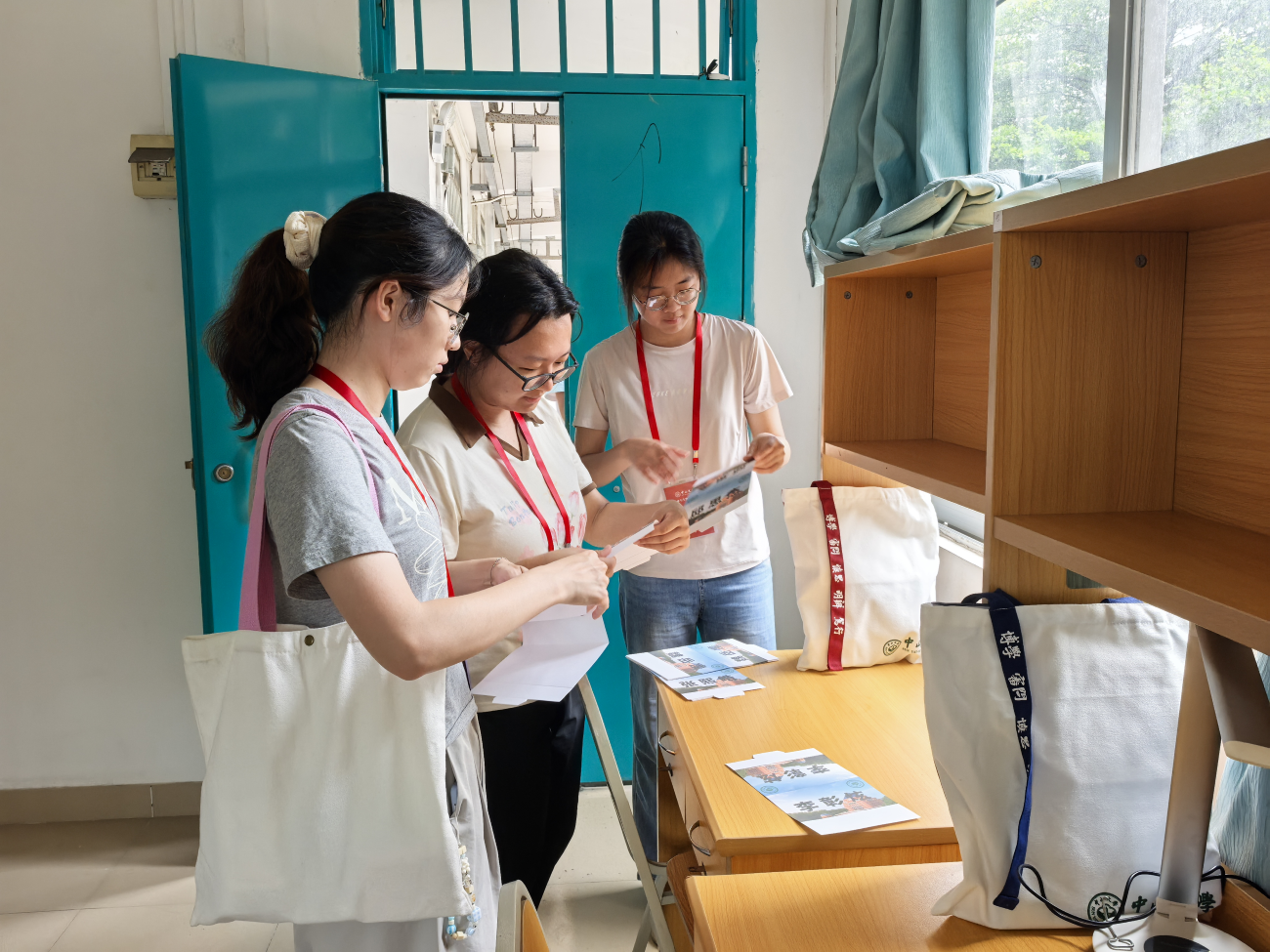 志愿者们正在布置新生寝室