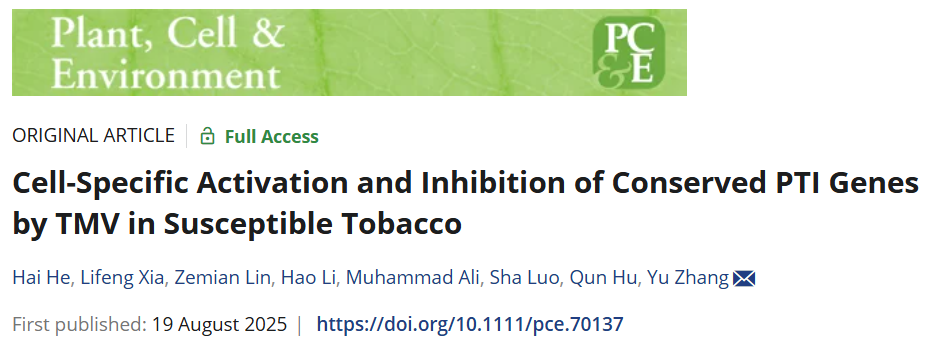 近日,yl1111永利集团张雨副教授课题组在Plant Cell & Environment(生物学1区Top)在线发表了题为“Cell-specific activation and inhibition of conserved PTI genes by TMV in susceptible tobacco”的研究论文,在组织和细胞水平揭示易感烟草在TMV侵染后触发PTI免疫反应,并深入讨论植物与病毒相互作用过程。