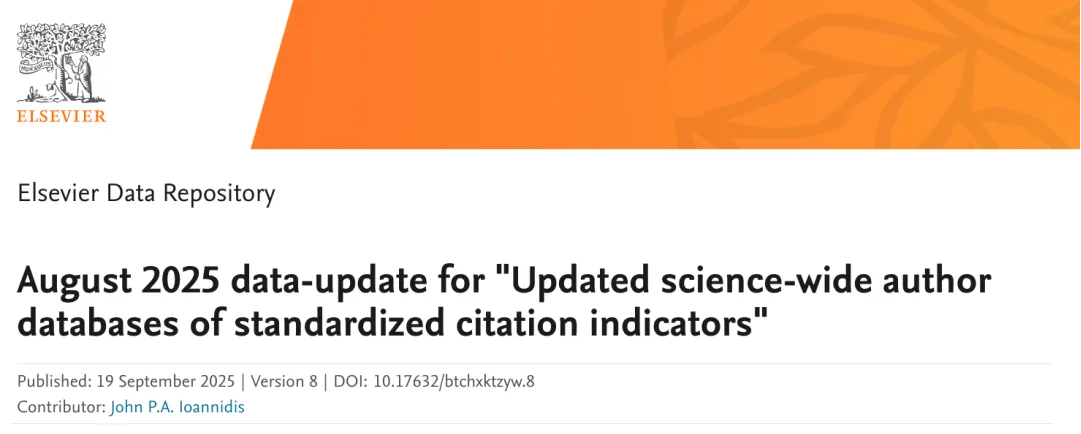全球前2%顶尖科学家榜单原文链接:https://elsevier.digitalcommonsdata.com/datasets/btchxktzyw/8