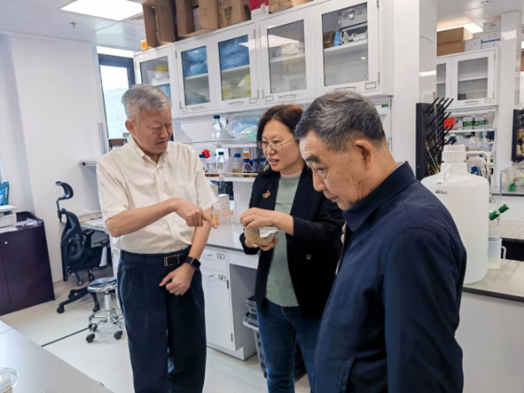 调研座谈结束后,指导组一行参观了农学院AI遗传育种和有害生物绿色防控团队实验室。团队负责人史俊鹏副教授、胡建教授分别介绍了各自团队的科研工作。