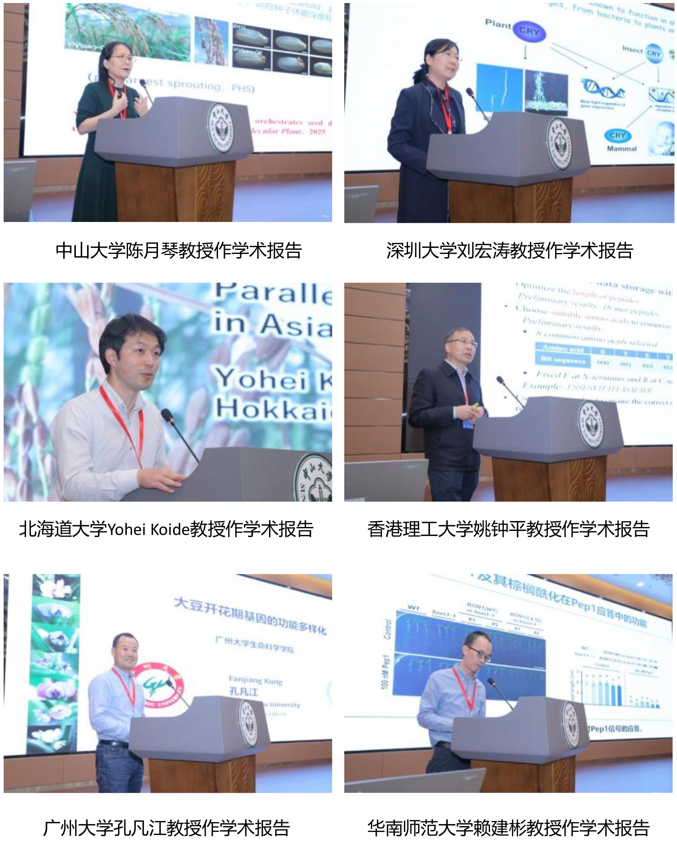 随后,大会围绕“植物发育分子调控”“植物逆境适应机制”“植物信号转导”“植物免疫分子调控”“植物能力代谢与物质合成”等多个专题,开展了高水平的前沿学术报告。香港中文大学姜里文教授、香港理工大学的姚钟平教授、中山大学李剑锋教授与陈月琴教授、深圳大学刘宏涛教授、华南师范大学赖建彬教授、广州大学孔凡江教授,以及来自植物科学不同领域的23位海内外知名专家学者先后分享各自的最新研究成果。