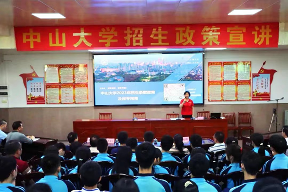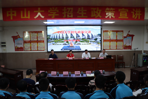 在两所学校的宣讲中,水寨中学钟声辉校长、中英文实验学校毛雨初校长等的校领导,分别对学院代表中山大学进校宣讲表示欢迎和感谢,介绍了各自学校运用先进的教学理念和管理方法,教学质量不断提高等良好的发展态势;鼓励同学们志存高远、勤奋学习,通过高考实现个人理想的同时,努力回报社会、建设国家;并表示加强和中山大学的学习与交流,努力为国家培养更多的现代化、创新型拔尖人才。