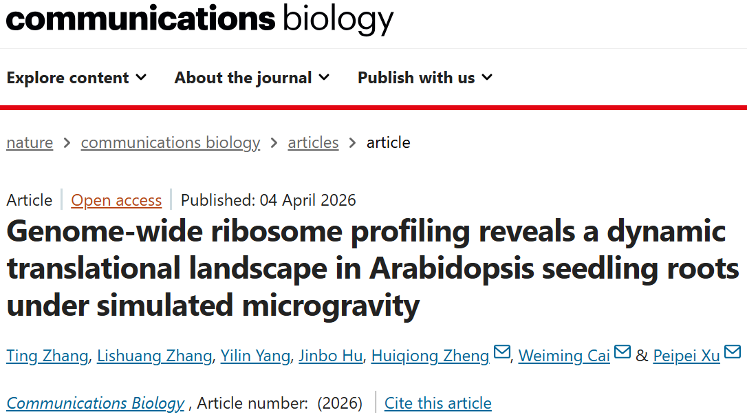 Communications Biology | 徐佩佩课题组利用全基因组核糖体图谱技术揭示植物根系响应模拟微重力的翻译调控机制