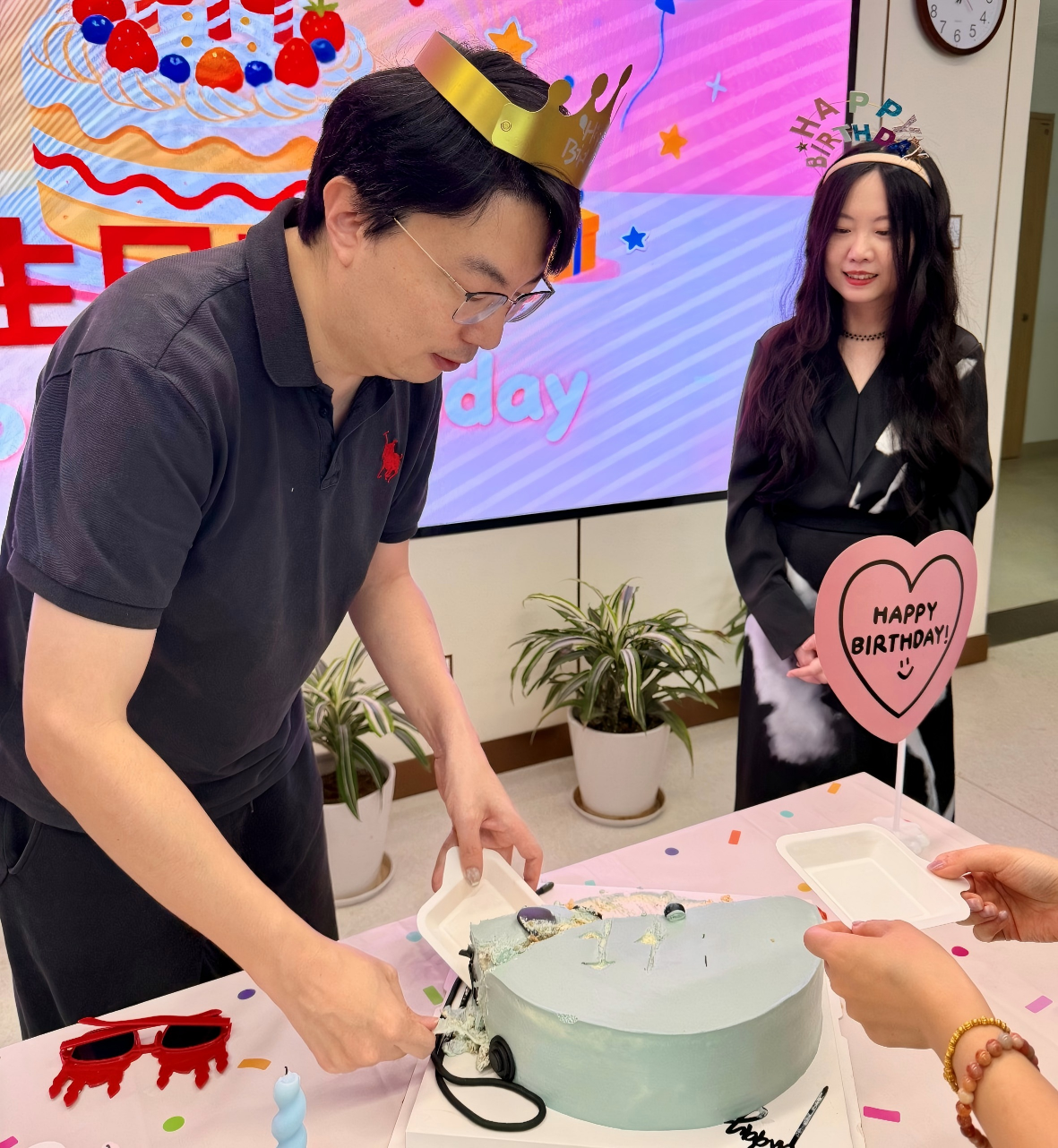 分享结束后,温馨的生日庆祝环节正式开启。伴随着欢快的生日歌,寿星们一同点燃生日蜡烛,双手合十许下美好心愿。随后,大家共同分享香甜的生日蛋糕,现场欢声笑语不断,暖意融融。
