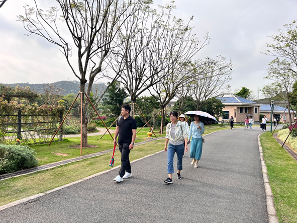 4月11日9时,一众教职工抵达光明区的罗田森林公园。放眼望去,皆是郁郁葱葱的山林,路边的鲜花在春风中摇曳,大小水塘如明珠般点缀在群山之间。