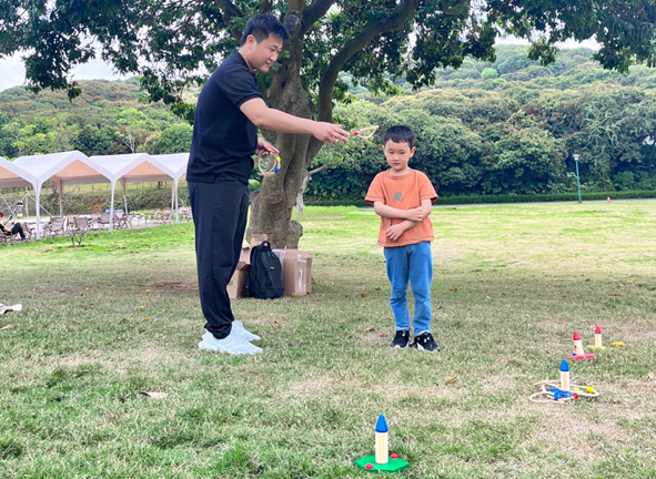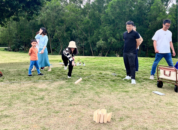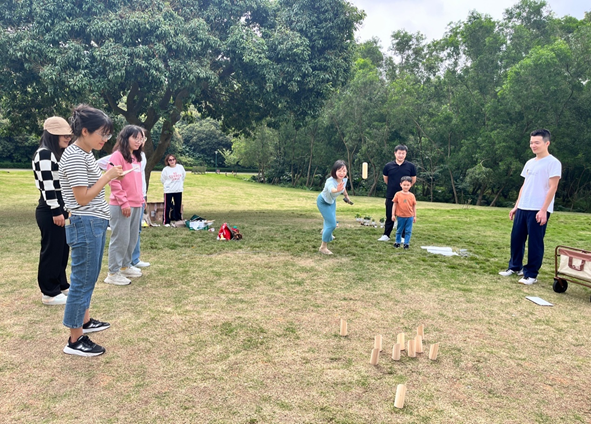 兴致勃勃的教职工们在草坪上开展了套圈、撞柱等游戏,加油声与欢笑声此起彼伏,现场气氛热烈,大家尽情释放心情,感受明媚春日。