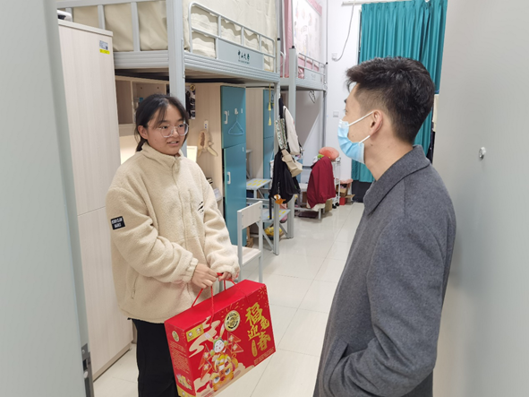 三年疫霾散,玉兔迎春来。伴随着春节的临近,农学院更加关心寒假留校的同学,不仅安排了假期班主任、辅导员老师轮值,还购置了坚果大礼包、口罩、酒精等物资,进行了节前走访慰问,落实落细“三全育人”工作。