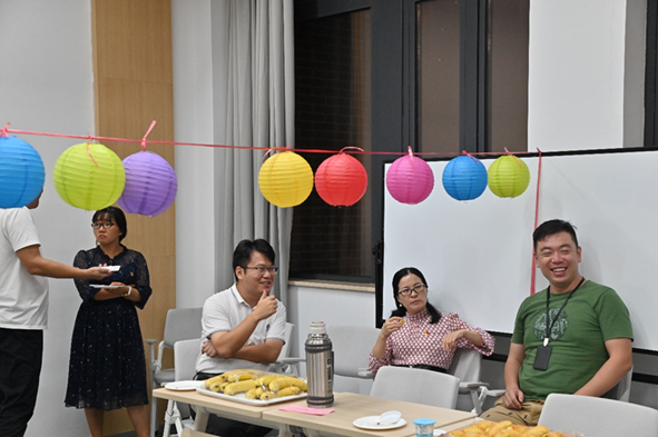 “双节”联谊晚会由学院工会副主席张晓艳主持,分工会委员们精心设计了游艺节目,党政教辅人员布置了祥和喜庆的会场,准备了月饼、水果等茶点。学院教职工欢聚一堂,共庆佳节。大家品尝着月饼,兴致勃勃地“烧脑”猜灯谜,重温传统中秋氛围;临时组队,各显其才地参加“你比我猜”、“谁是卧底”等团队游戏。分工会委员们各尽其职地计时计分,认真程度不亚于考试评分。领导与教工、新老教工之间见缝插针地随心交流,沟通彼此科研信息和学院近期工作。