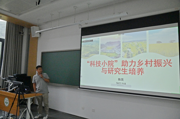 教职工第一党支部书记、“科技小院”建设负责人陈昊老师,结合暑期对洱海生态环境治理工程中“科技小院”建设的实地调研,解读了 “科技小院”驻扎在农村、产业等生产第一线,与农民、企业和政府“零距离”开展科技创新、技术服务和人才培养,已由国家大力推广的特色育人模式;结合师生云南凤庆“三下乡”服务、教职工党员台山红色教育与乡村振兴调研,分享了地方乡村振兴发展的喜人变化,和对现代农业复合型实用人才的空前渴求。学院新近获批了“资源利用与植物保护”农业硕士专业学位点,正与相关地方政府和企业推进“科技小院”建设,希望师生们共同参与建设,一起助力乡村振兴。