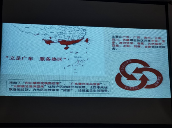当天下午,学院邀请南亚所党委副书记、副所长陈佳瑛和青年科技人员严程明老师,分别为同学们做了“南亚所红色院史与乡村振兴服务”及 “科技小院——产学研融合的农村基层科技服务”的思政讲座。陈佳瑛副书记深情地回顾了南亚所为抗美援朝找橡胶、育橡胶,支援部队建设的红色创业史;介绍了新时代南亚所“立足广东,服务热区”,通过创新服务模式、组织方式等措施,研发、引育、推广热带水果,帮助地方脱贫致富、振兴乡村所取得的一系列骄人成就,鼓励同学们刻苦钻研、心系国家、服务“三农”。