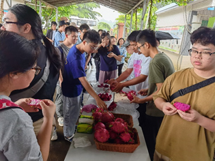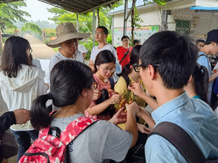 更重要的是,通过这次专业实习与社会实践,同学们进一步理解了学农的意义,以及新农科拓展的广阔天地。通过科技人员的不懈探索,新农科涉及的领域不再局限于传统的栽培、耕作,更侧重于运用良种选育与推广、经管机械化、产业营销升级、种质资源保护与利用并重等手段,不断夯实农业基础、提升农业品质、满足人民生活幸福感。在专业实习与社会实践,南亚所的科技人员结合现场参观与实践,热情招待师生们品尝口味奇特、品质上乘的热带水果科研产品,令同学们在收获知识的同时大饱口福。