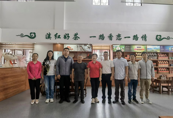 滇红茶博物馆留念(左四:杨明柱先生,右四:张哲副县长,)
