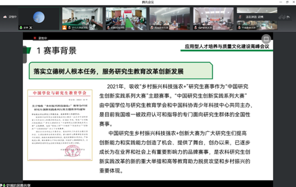 李健强教授主持乡村振兴科技强农+大赛实践育人模块,他追述了中国研究生创新实践系列大赛增设乡村振兴科技强农+主题赛事的过程。