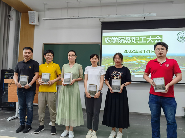 会议开始前,程书记向大家逐一介绍了新入职的3位教师、1名行政人员和2名博士后,代表学院欢迎他们克服疫情影响顺利到岗,并为他们发放了有关红色校史院史的书籍,希望大家团结协作、攻坚克难,推动学院不断健康发展。