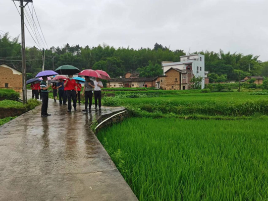 随后,调查组调研了荣福村的水稻、玉米生长情况。农学院总支副书记胡罡表示将不定期组织师生深入岐岭镇,接受革命传统教育,调研生产实际需求,推广现代实用技术,把新思想、新品种、新技术、新理念带回老区、回馈老区。