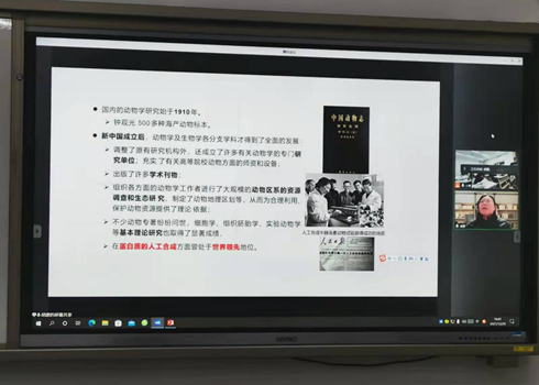 担任专业基础课《动物学》教学的胡建老师,讲授了党和政府以人民健康为重,领导抗击血吸虫病等地方性疾病的成就,并从动物多样性的保护意识入手,培养学生养成富于人文关怀的情感。