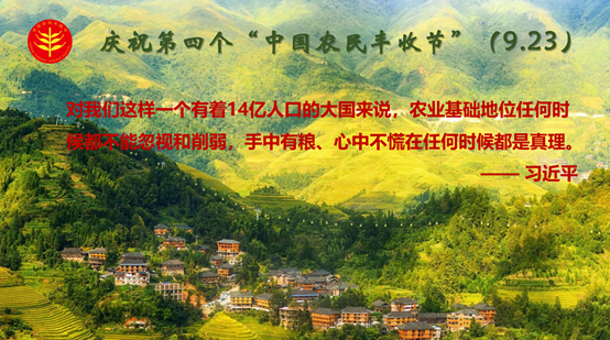 【丰收节由来】经党中央批准、国务院批复自2018年起,将每年秋分日设立为“中国农民丰收节”。具体工作由农业农村部和有关部门组织实施。这个节日的设立,是习近平总书记主持召开中央政治局常委会会议审议通过,由国务院批复同意的。这是第一个在国家层面专门为农民设立的节日。设立一个节日,由中央政治局常委会专门审议,这是不多见的,充分体现了以习近平同志为核心的党中央对“三农”工作的高度重视,对广大农民的深切关怀,是一件具有历史意义的大事,是一件蕴涵人民情怀的好事。