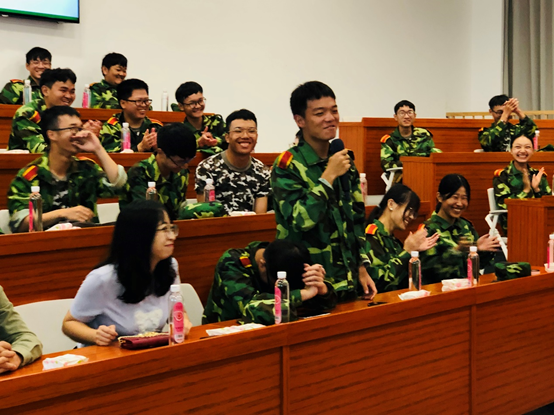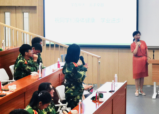 最后,班主任黄晓辰和梁栋、辅导员陈素玲三位老师就具体工作,分别向同学们做了提醒。同学们也就关心的学习、生活问题与老师们做了互动交流。通过互动交流,同学们信心满满、心情愉快地投入下一阶段的军训和专业学习准备。