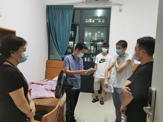 在东园宿舍,程书记、辅导员陈素玲老师、班主任梁栋老师和周潇峰老师走访了本科生宿舍,了解同学们的宿舍入住情况、提醒同学们积极做好疫情防控工作等。特别是中小学时代在新疆度过的周潇峰老师,热情地与新疆班的新同学了解他们各自家乡情况,以及初到深圳的感受,更是拉近了师生的距离,使新疆班的同学倍感亲切。