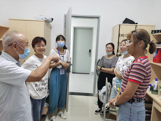 在西园宿舍,谭院长和刘婧娜老师一起走访了研究生宿舍,询问同学的生活情况,了解同学们的科研规划等。