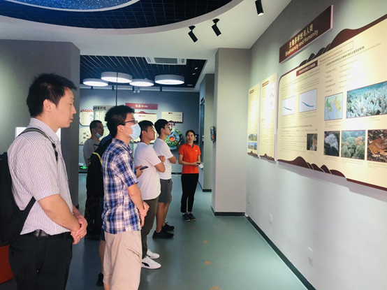 在博物馆二楼,调研组一行参观了“痴心追梦 魂铸丹霞——彭华教授事迹展”。丹霞山与中山大学颇有渊源,“丹霞地貌”即是由中山大学的著名地质学家冯景兰院士、陈国达院士和曾昭璇教授、彭华教授等四代学者发现和命名。1982年,当时在中山大学地理系任教的黄进教授发表了全面论述丹霞地貌的第一篇论文《丹霞地貌坡面发育的一种基本方式》,其 “顶平、身陡、麓缓”的六字概括简明准确,产生了广泛的学术影响力。2006-2010年,地理科学与规划学院彭华教授成功主持南方六省“中国丹霞”联合申报世界自然遗产,并发挥专长,历任全国丹霞地貌旅游开发研究会第三、第四、第五届理事长,为丹霞山的开发与管理应用研究做出了突出贡献。