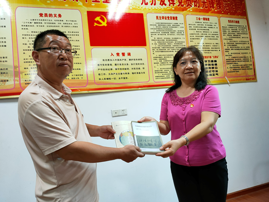 在参观过程中,调研组在导览员的讲解下,通过观看革命图片、聆听革命故事、体悟革命精神,重温了年关暴动的红色革命斗争史,进一步树立起正确的世界观、人生观和价值观。在年关暴动指挥部旧址,调研组为新近入党的张天旭同学举行了入党宣誓仪式,同行的党员一道重温了入党誓词。大家表示将继续发扬革命传统,立足本职,不忘初心,履行好共产党员的誓言承诺和现代农业从业者的职责担当,为学院的复办发展与国家的乡村振兴的工作作出积极贡献。临别时,程月华书记代表学院为宜章县赠送了反映中山大学抗战史的书籍。