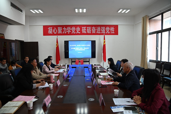 周新刚书记首先致辞,对中大农学院一行的到来表示热烈的欢迎,着重介绍了本学院的历史沿革、办学特色,特别是助力扶贫攻坚、创建特色田园乡村方面的成效,希望通过此次座谈能够开启双方乡村振兴方面交流合作的新局面。随后,徐筑艳院长着重介绍了本学院人才队伍建设、学科整合的基本情况、以及“十四五”期间助力乡村振兴方面的设想与困惑。徐院长指出,学院通过加大人才引进力度,在落实写好“大地论文”上取得了可喜的成绩,希望中大农学院领导能够结合自身科研、工作实践和身处改革开放前沿的优势,在提升乡村振兴成效上给予指导和建议。