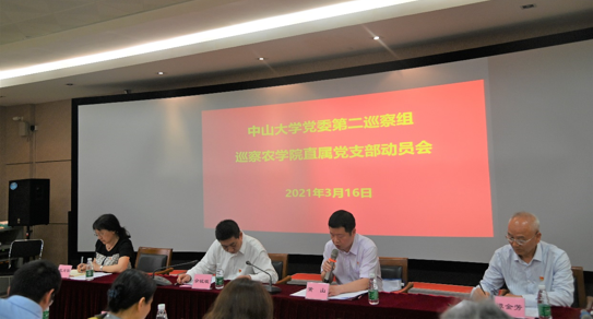 学校党委第二巡察组组长黄山同志指出,巡视巡察是全面从严治党的重大举措,是党内监督的战略性制度安排。巡察组将按照政治巡察要求,紧扣高校立德树人根本任务,结合学校实际,聚焦二级党组织政治责任,检查落实党的理论和路线方针政策以及党中央重大决策部署情况,检查落实全面从严治党战略部署情况,检查落实新时代党的组织路线情况,检查落实中央巡视、审计等监督发现问题和“不忘初心、牢记使命”主题教育检视问题整改情况。巡察组将通过听取汇报、个别谈话、问卷调查、受理来信来电来访、抽查调阅资料、召开座谈会、列席有关会议、实地走访调研等方式开展巡察监督,发现问题、形成震慑,推动改革、促进发展,发挥标本兼治战略作用,为全面从严治党提供有力支撑。巡察组将紧紧依靠农学院直属党支部,严格按照《中共中山大学党委巡察工作实施办法》开展工作,严格遵守巡察工作纪律,接受群众监督,坚决完成学校党委交给的巡察任务。