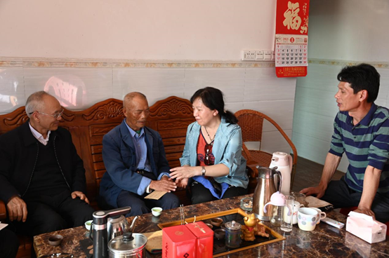 随后,学院一行人到涂振辉老人家慰问、交流。老人家庭生活富裕,子女各有所成。经历了新旧社会对比,老人由衷地感叹:想想过去,看看现在,我虽然不是共产党员,但我拥护共产党、感谢国家,希望国家发展得越来越好,百姓生活越来越好。谭金芳院长邀请老人在子女的帮助下,通过回忆帮助农学院记录、完善这段珍贵的抗战办学史,让农学院的红色办学基因得到更好地传承。程月华书记向老人及其家人表达了由衷感谢和新春祝福,并代表学院送上了慰问金。