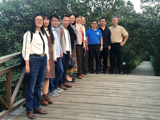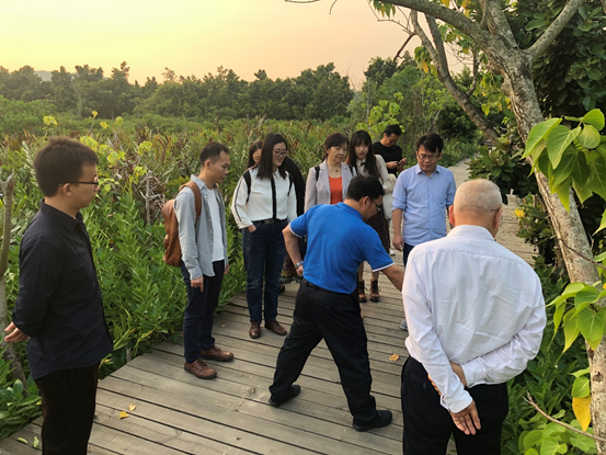 与两个学院交流会结束后,大家在辛国荣副院长的带领下,到作为科教实习基地之一的珠海淇澳红树林湿地公园,进行了植物种类实地考察。在湿地公园负责人和专业技术人员的引领下,大家就科教实习合作做了进一步的交流。