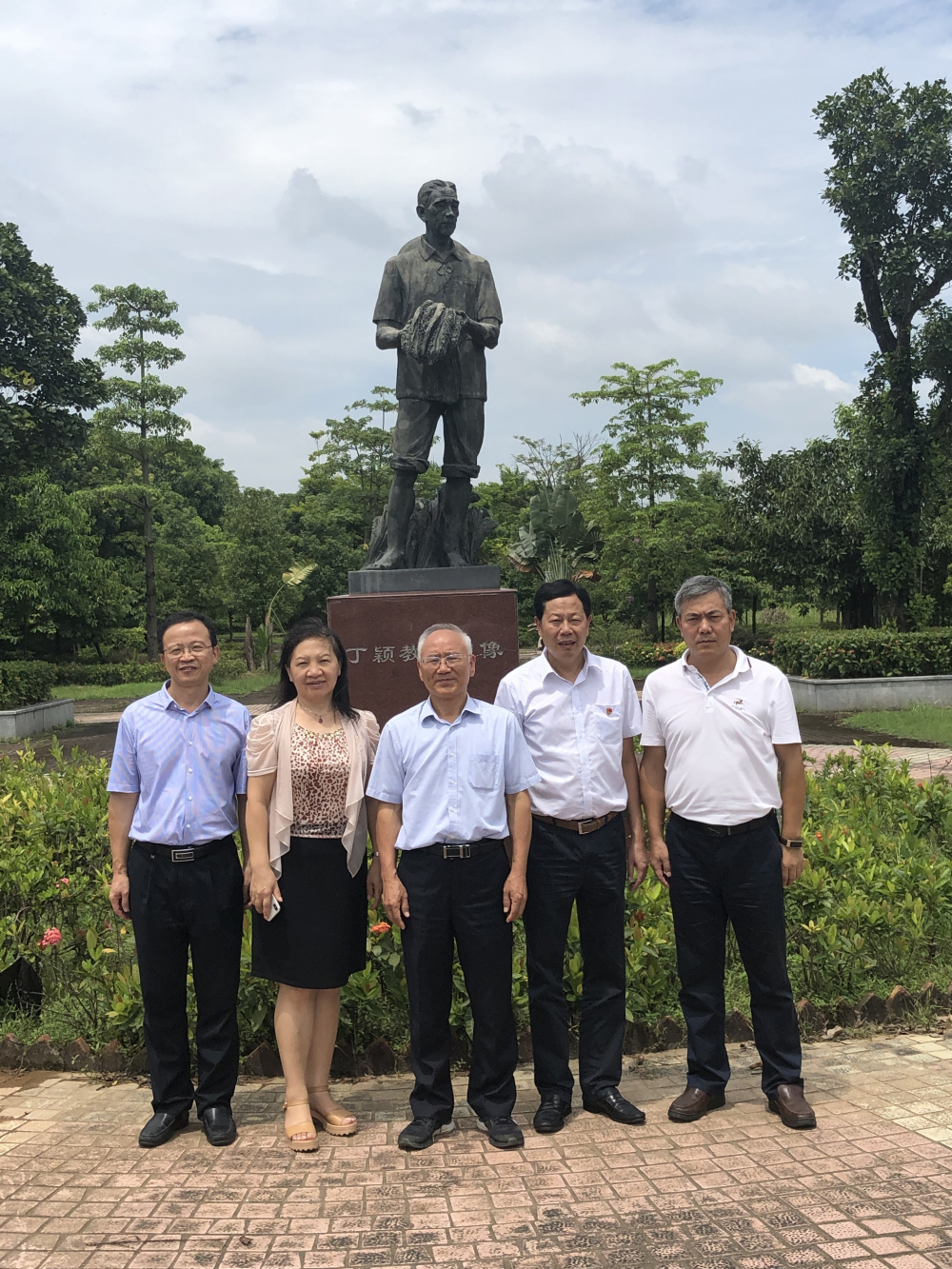 随后,在广东省农科院,在杨少海副院长、罗国庆主任等专家的陪同下,学院一行现场调研了该院农业科研试验示范场,参观了科技成果展厅,并着重查看、了解了“农业部广州赤红壤神态环境重点野外科学观测试验站”的建设情况。辛国荣副院长就农学院师生在此开展教学科研实践等事项,与农科院相关领导进行了交流,得到了理解、支持。大家还一起拜谒了矗立在示范场院区的原农学院院长丁颖院士塑像。丁颖院士被誉为“中国水稻之父”,长期在中大农学院任教,1945–1950年出任农学院院长,也曾任广东农业科学院首任,院长被周恩来总理誉为“中国人民优秀的农业科学家”。