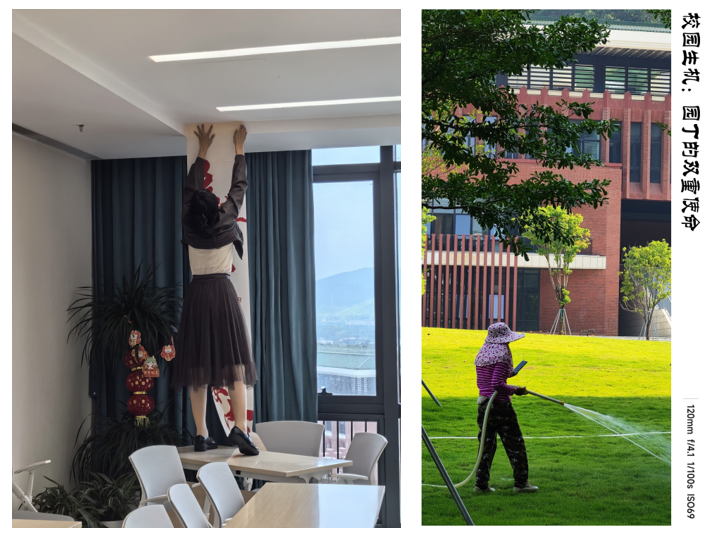 此外,本次活动也得到男教职工的大力支持,在与女同事共事的过程中,他们用照片定格她们业余时间从事活动场地布置和后勤员工管护绿茵辛勤劳作的最美瞬间。