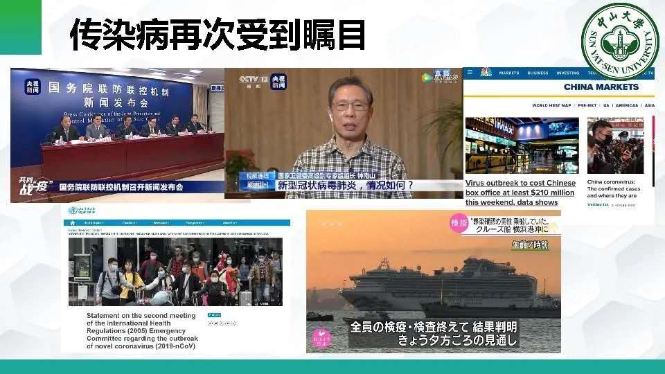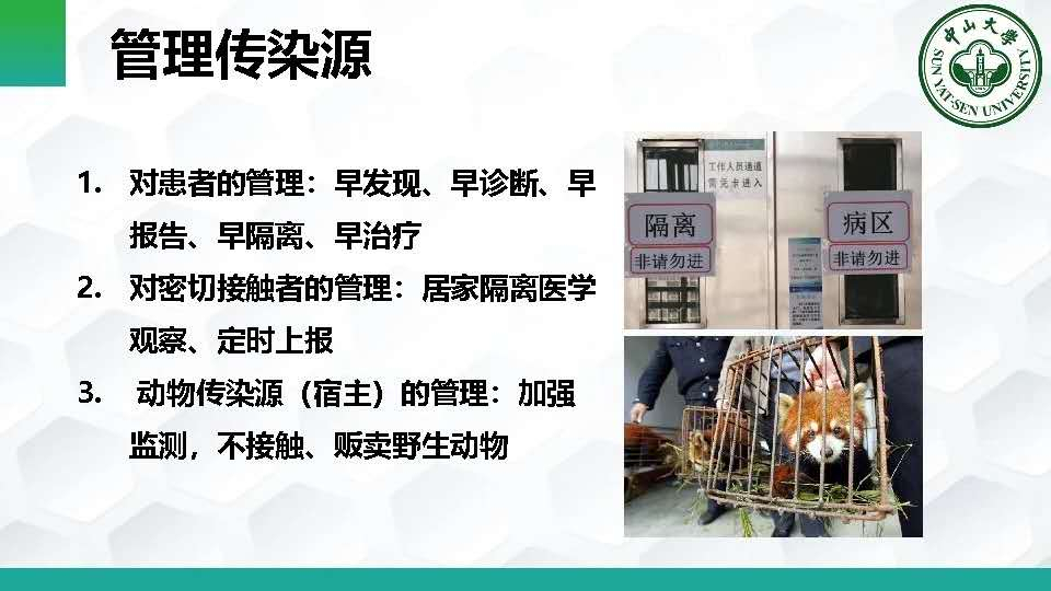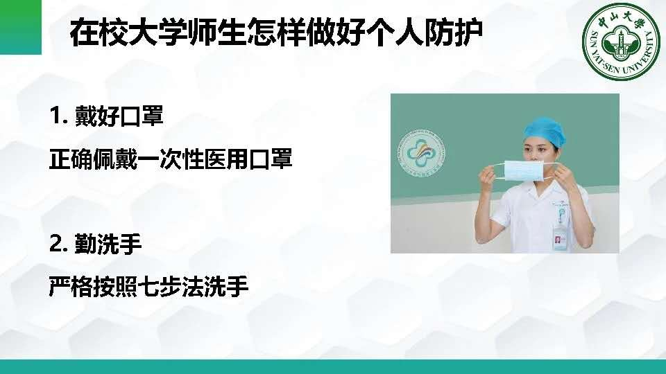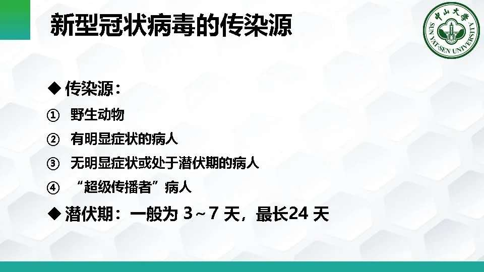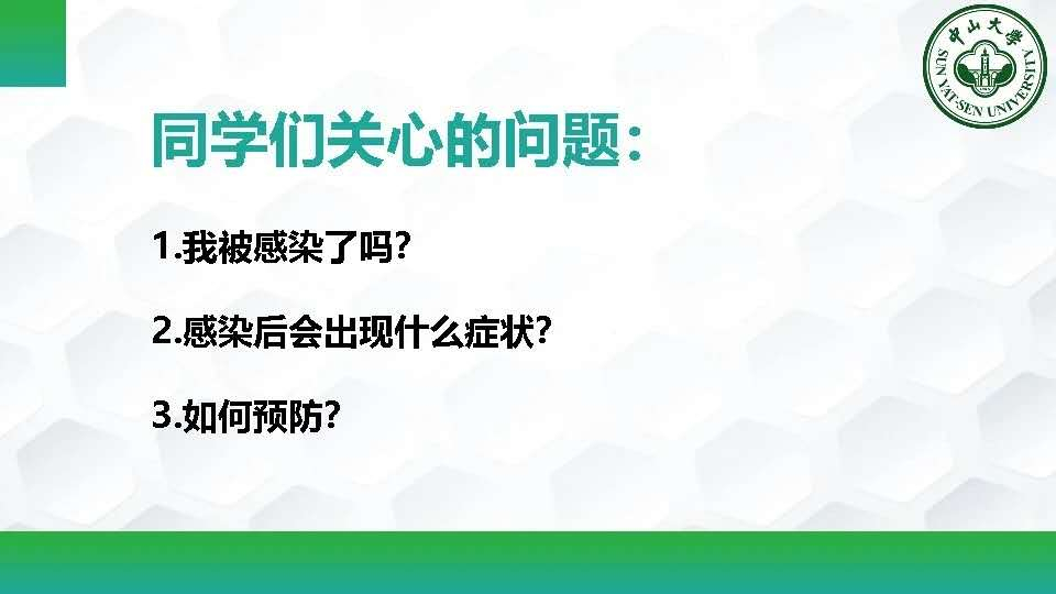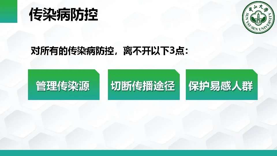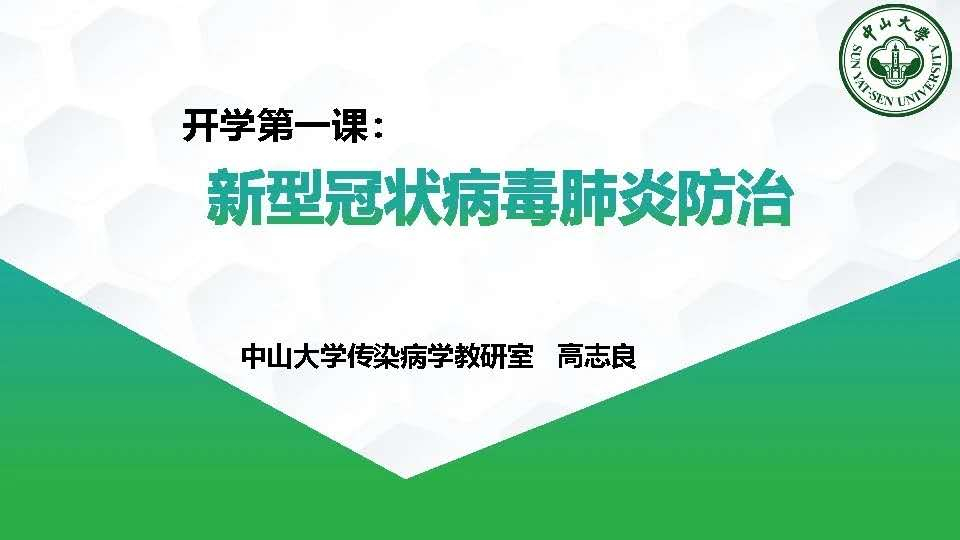 其中第三部分,由中山大学附属第三医院感染科高志良主任讲授,从传染病防控的角度,简单讲述新型冠状病毒肺炎的发生、发展过程,重点讲述在校师生在日常生活中如何做自我评估及个人防护。下面有课程PPT分享,供师生共同学习。