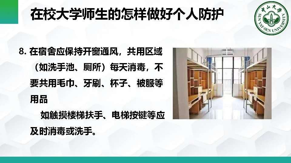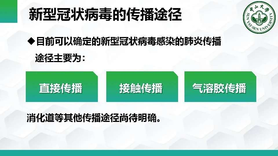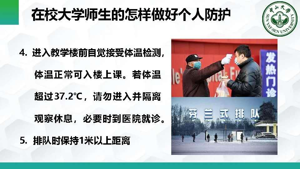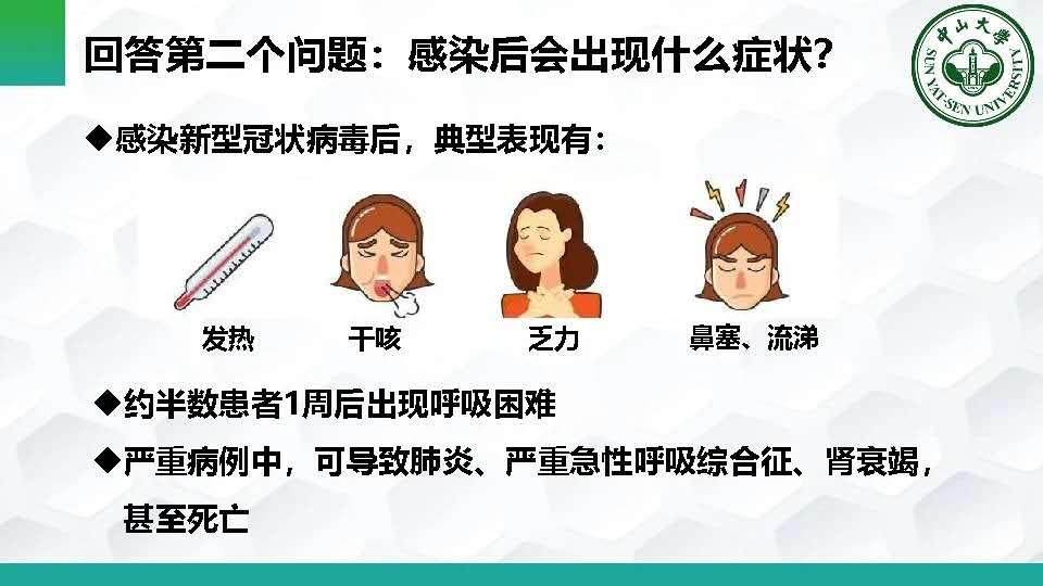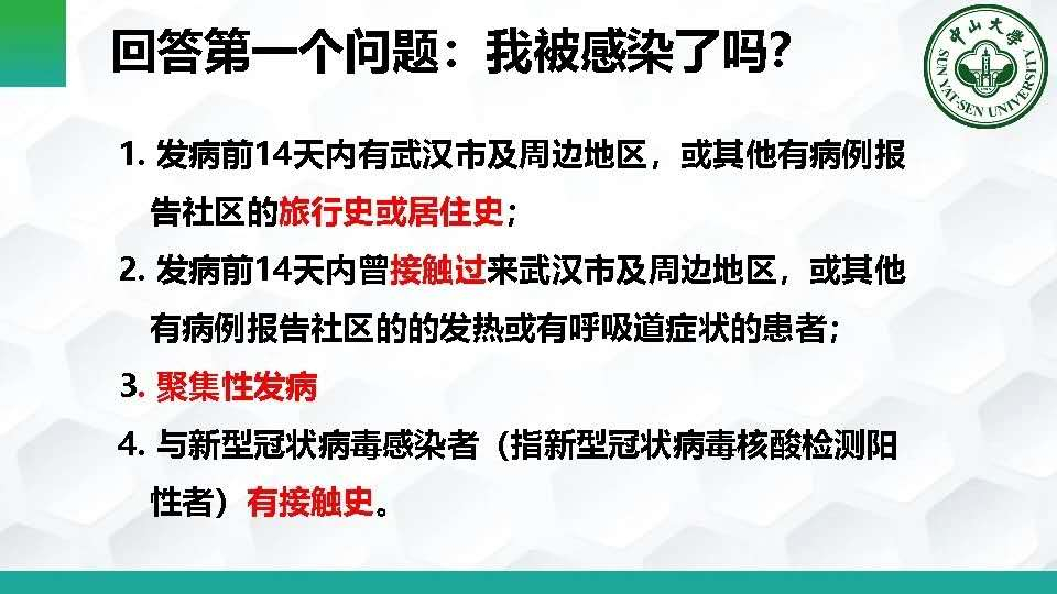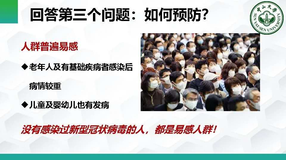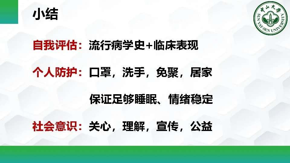 其中第三部分,由中山大学附属第三医院感染科高志良主任讲授,从传染病防控的角度,简单讲述新型冠状病毒肺炎的发生、发展过程,重点讲述在校师生在日常生活中如何做自我评估及个人防护。下面有课程PPT分享,供师生共同学习。