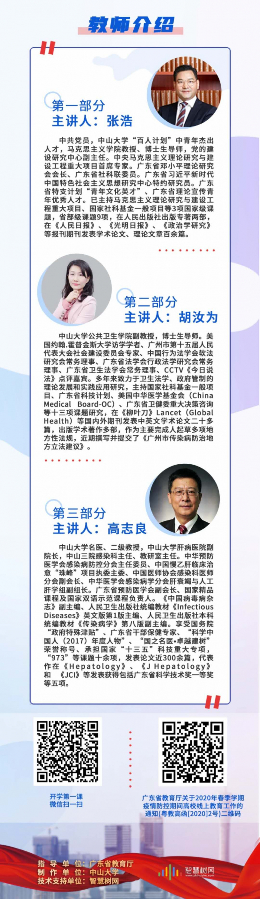 在这个史无前例的超长寒假,相信同学们都宅腻了,特别想念上学的日子。中山大学组织了“顶流教授天团”,给广东省200万大学生录制了一堂集思政、公卫、医学于一体的开学第一课。