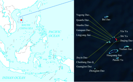 文中除了配有分类学论文中常用的形态图和生境图外,还配有符合国家地理信息标准的南中国海及周边区域地图,并详细标注了西沙永乐群岛中各个岛礁的中国官方名称。